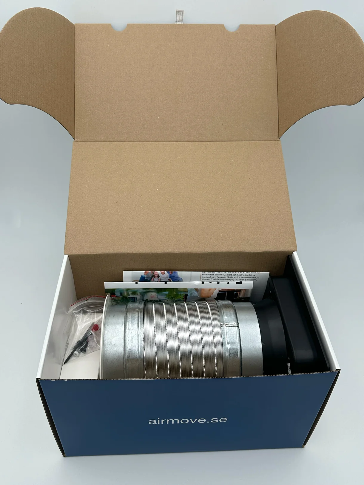 Airmove 2.0 arbetar mycket tyst och med låg energiförbrukning, vilket gör den till en effektiv och diskret lösning för bättre komfort i hemmet.