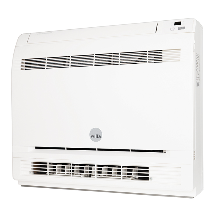 Trysil Floor Comfort är konstruerad för att stå på golvet och ger jämn värmefördelning via både topp- och bottenutblås. Den fungerar effektivt ner till −25 °C.